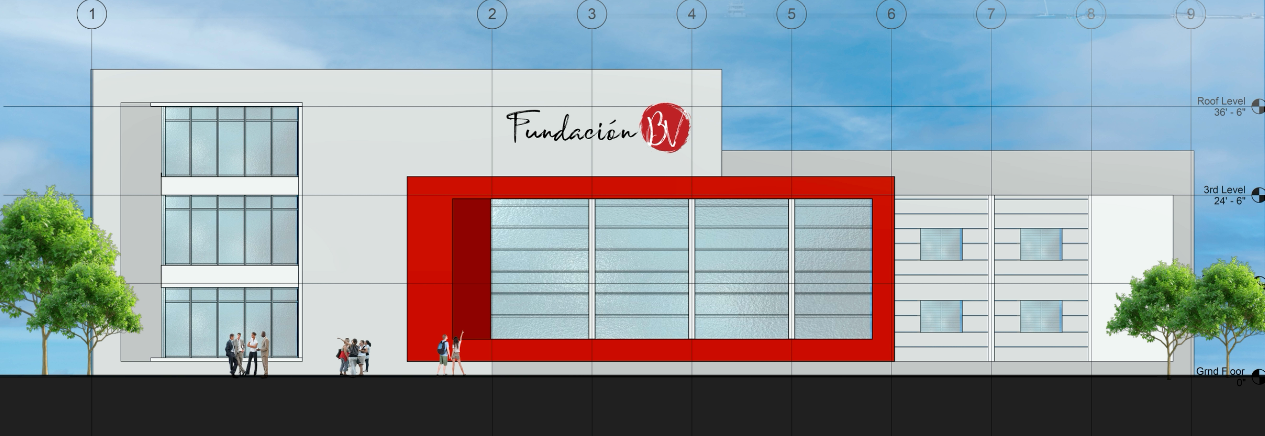 Las imágenes que compartimos son propuestas hechas de la facha e interior para el edificio de la Fundación, preparado por René Acosta Builders Atelier (RABA).